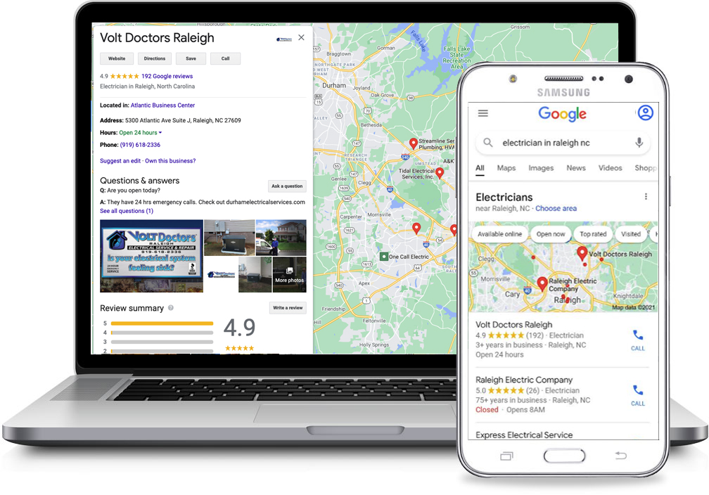 - Local search engine optimization (SEO) to improve your “map” rankings